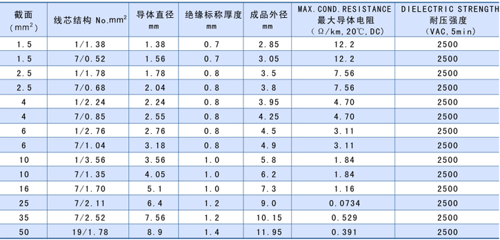 導體使用單芯或絞合導體1.5-50 裸銅或鍍錫